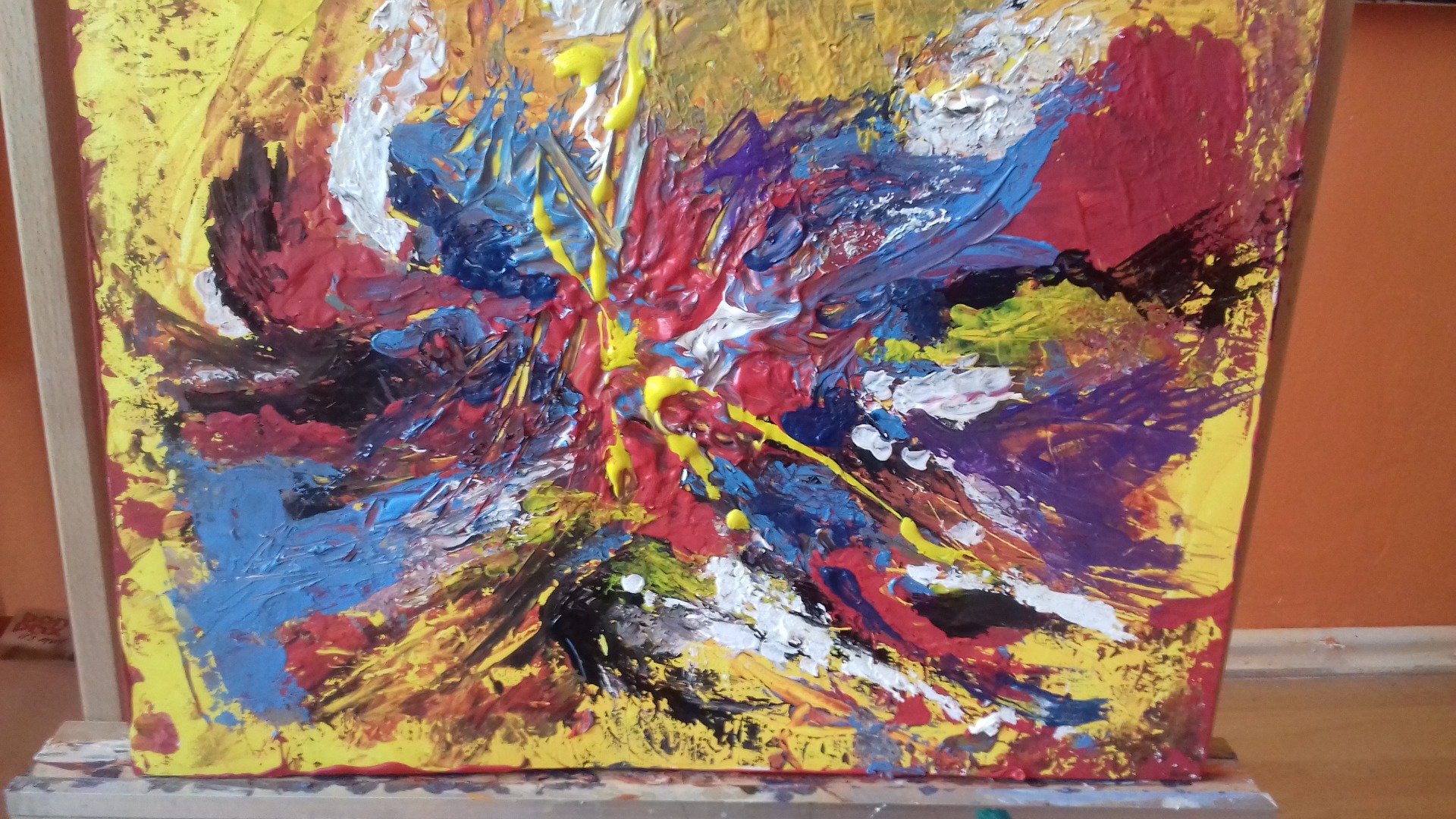 Akrilfestékkel készült kép 30X40 cm, kissé a titokzatos és absztrakt világába megy át.